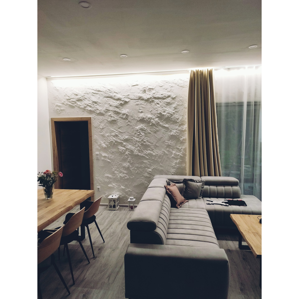 Betonová stěrka Stěrkoland je moderním, nadčasovým a odolným řešením do vašeho domova. S naší betonovou stěrkou dokážete navodit mnoho různých efektů na vaší stěně jako je beton s kaverny, broušený beton, hlazený beton, klasický beton, bednící beton nebo imitace kamene a mnoho dalšího... Dokážete navodit realistický vzhled betonu ve vašem domově. Jeden materiál. Tolik možností – vytvořte přesně to, co si představujete.